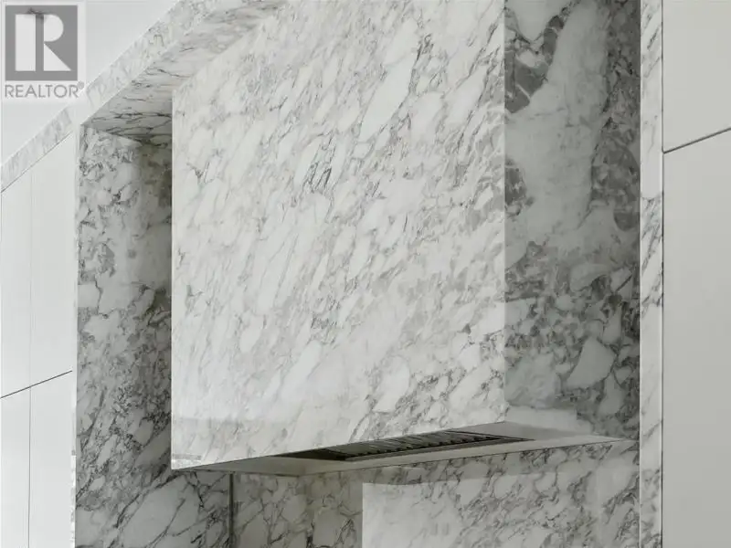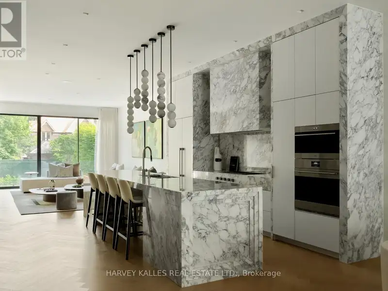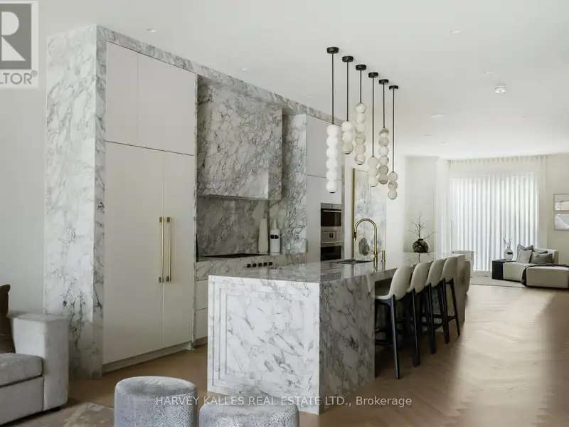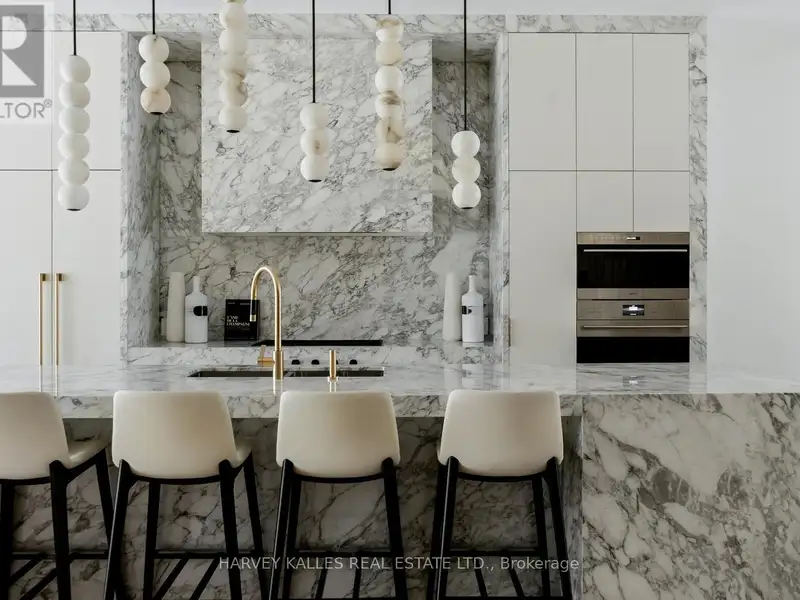 - Kitchen wrapped in Calacatta marble