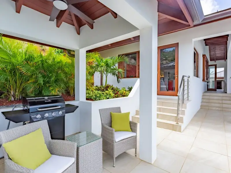 - Covered deck with BBQ setup