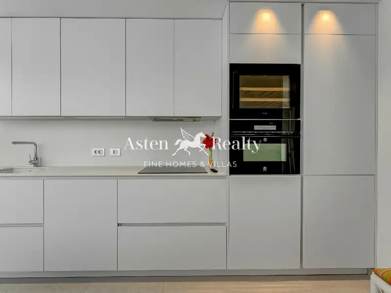 The villa consists of 2 floors, on the first floor there is a spacious living room with large windows and access to a large terrace, where there is also direct access to the beach and beautiful ocean views. On the second floor there is also a separate fully equipped kitchen with many large windows overlooking the pool. The kitchen has a wine cellar, oven, dishwasher and refrigerator all built-in and everything you need for cooking.