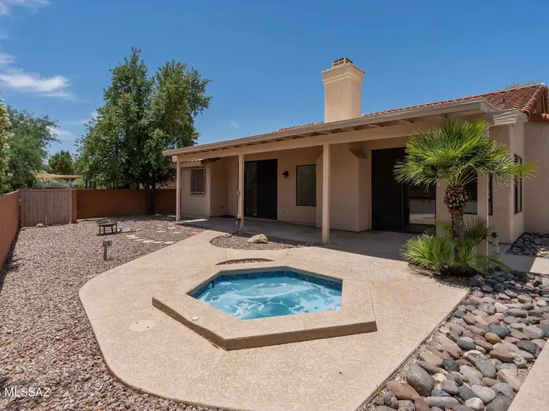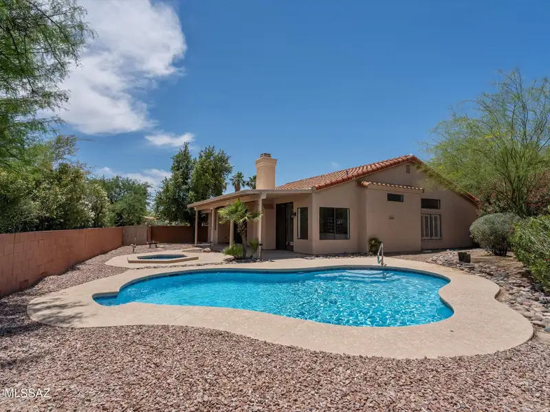 - Backyard with pool, spa, and covered patio