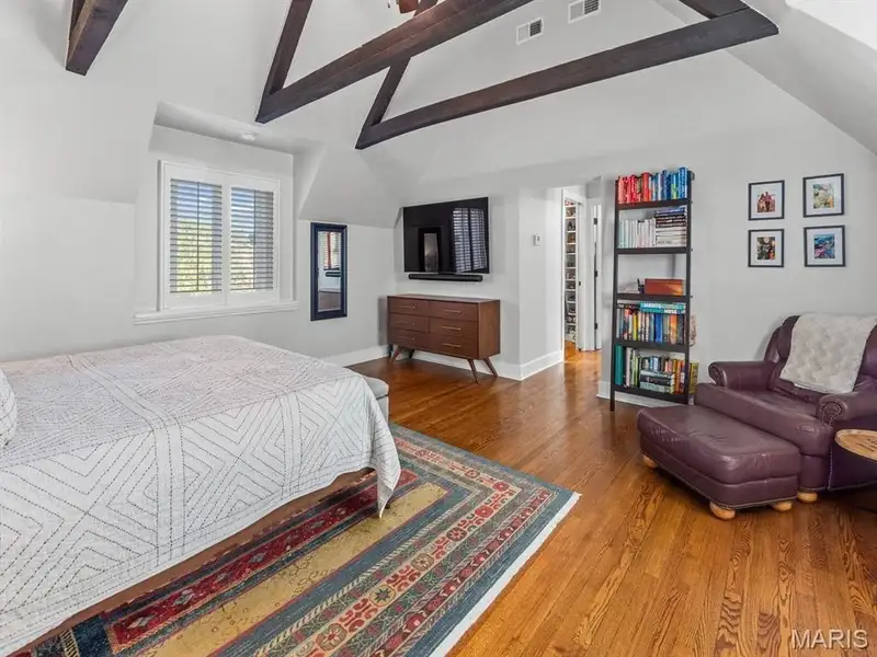 - Spacious primary bedroom with vaulted ceiling