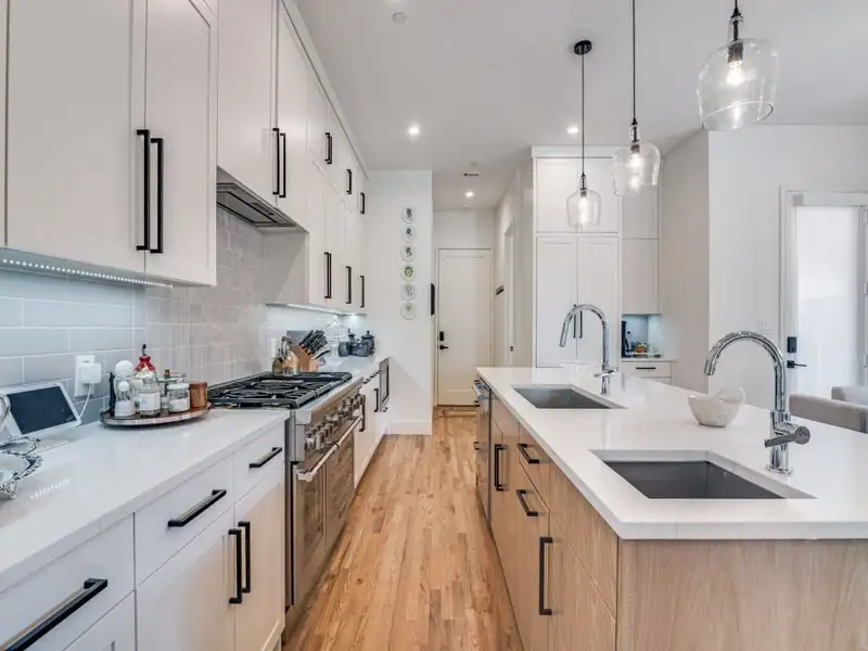 - Kitchen with large island and walk-in pantry