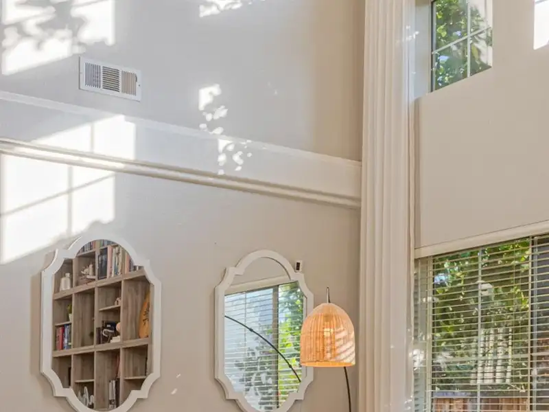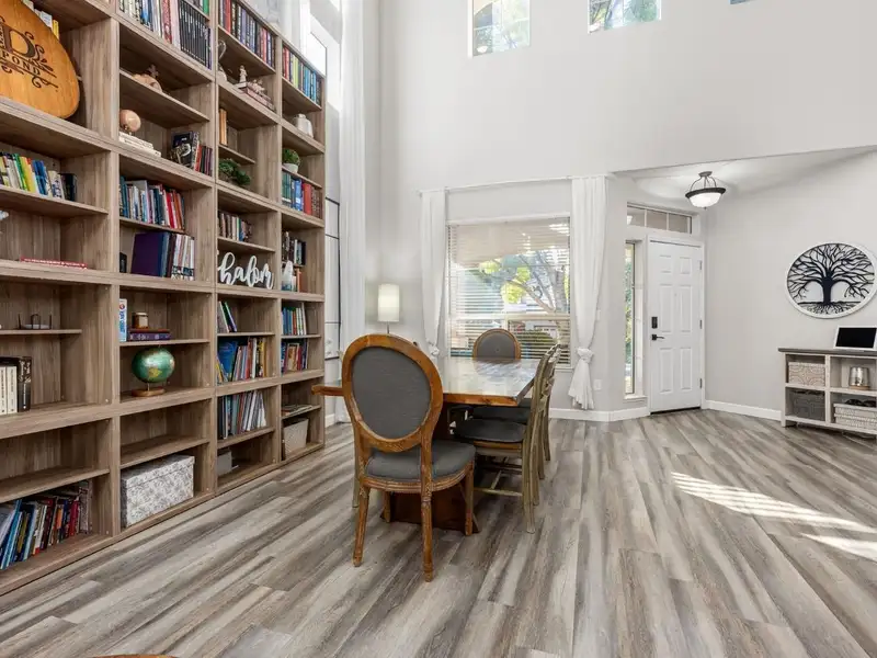 - Vaulted ceilings creating open feel