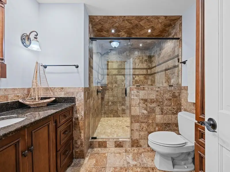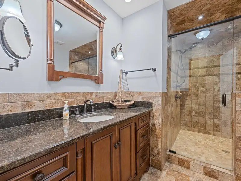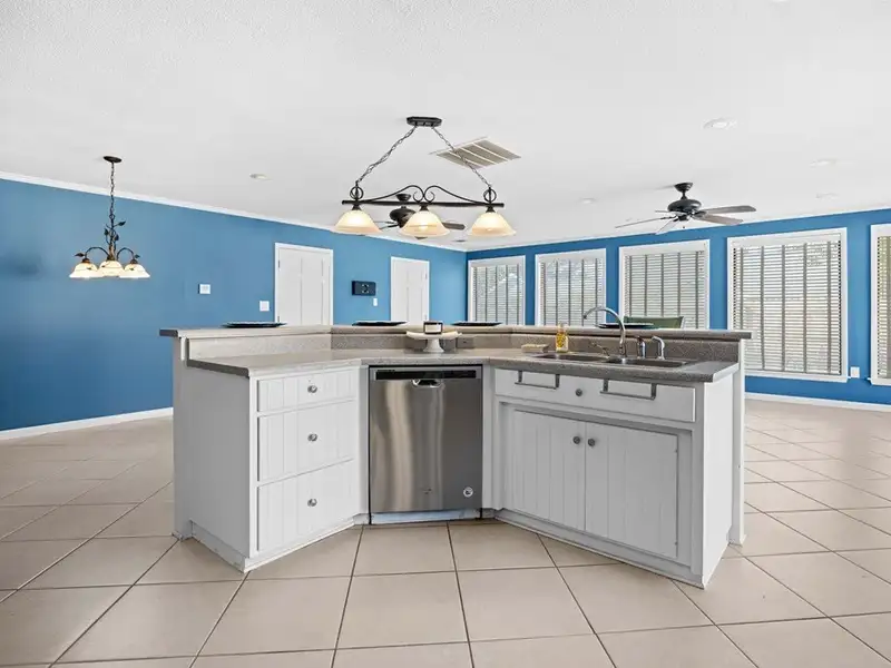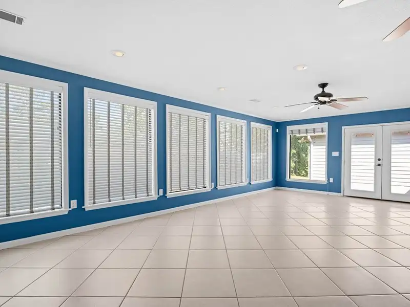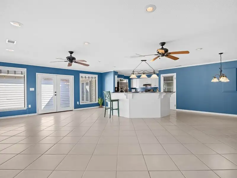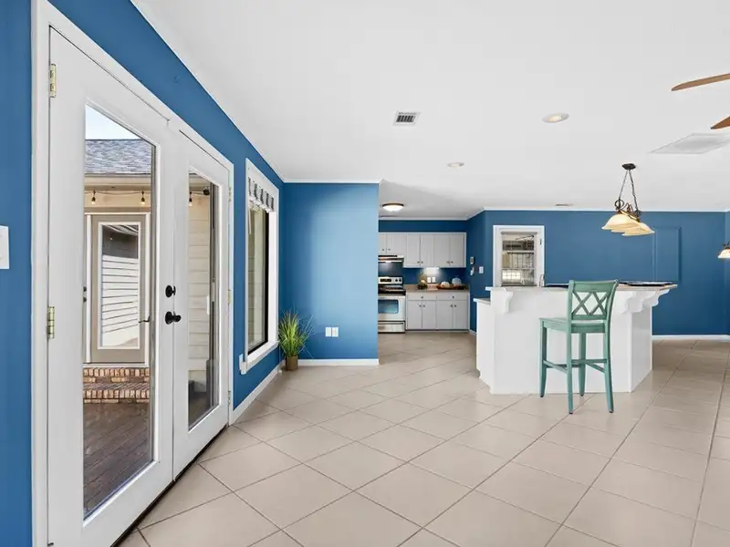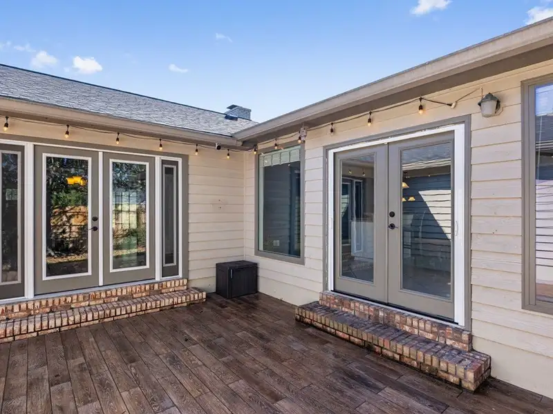 - Tiled back porch with custom lighting