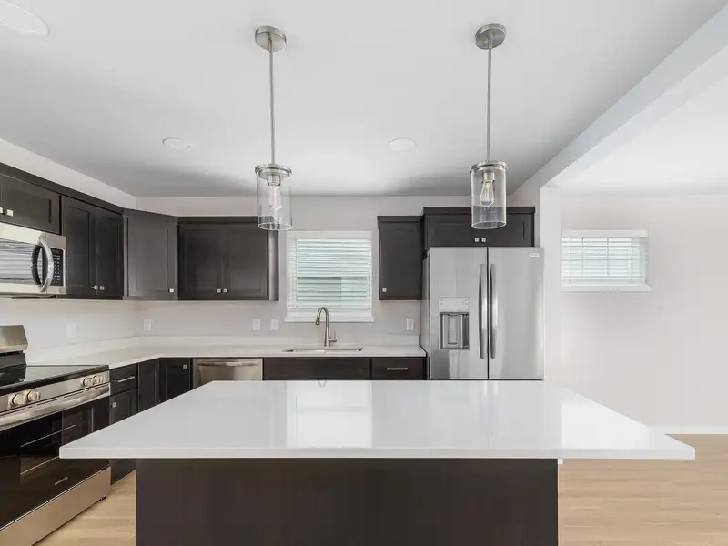 - Gourmet kitchen with island, stainless appliances