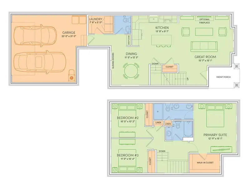 - 2-car garage included