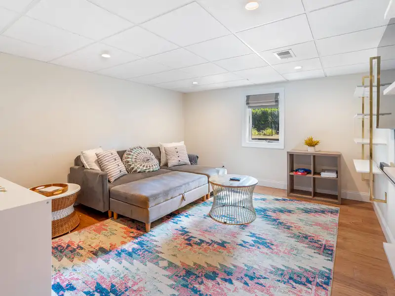 - Cozy living room with fireplace