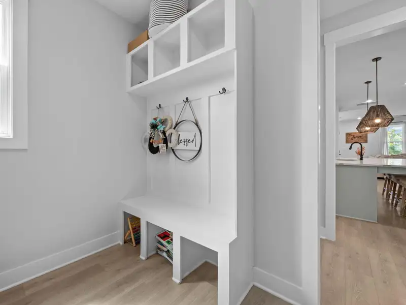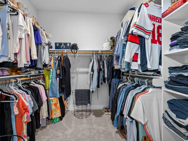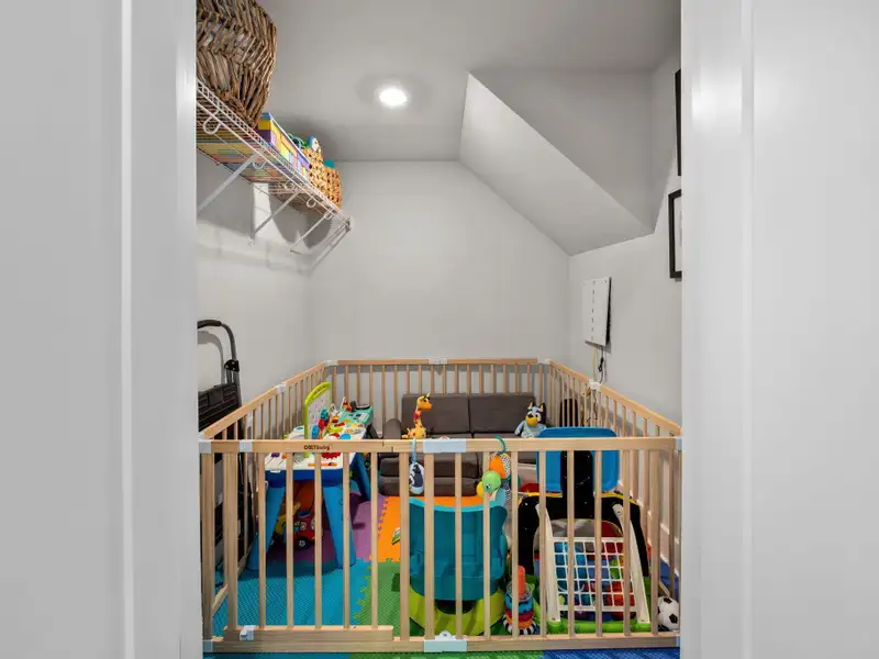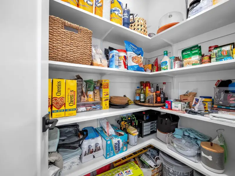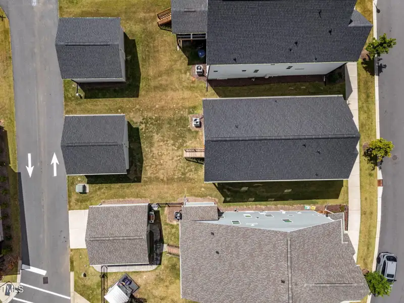 - Detached two-car garage with storage shelves