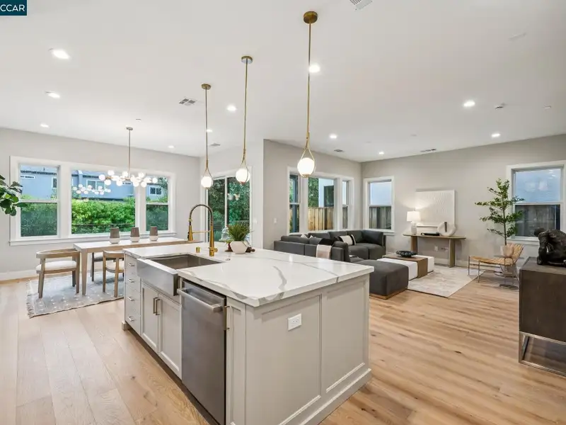 - Open-concept living with high ceilings
