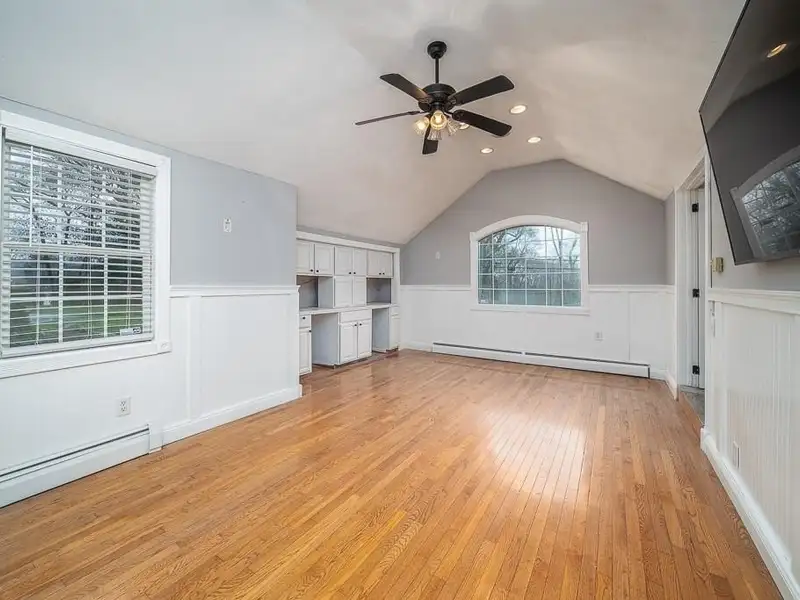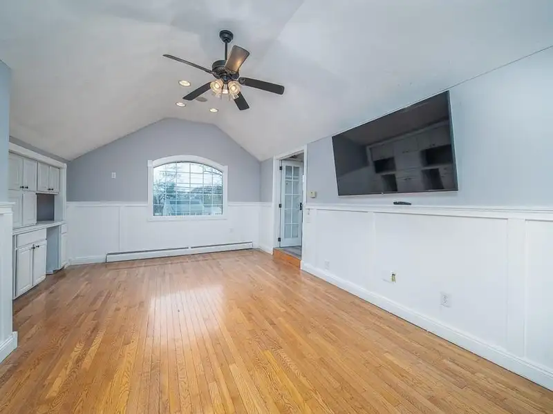 - Cathedral-ceiling family room with hardwood floors