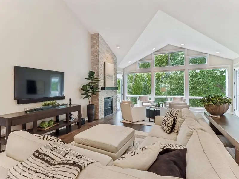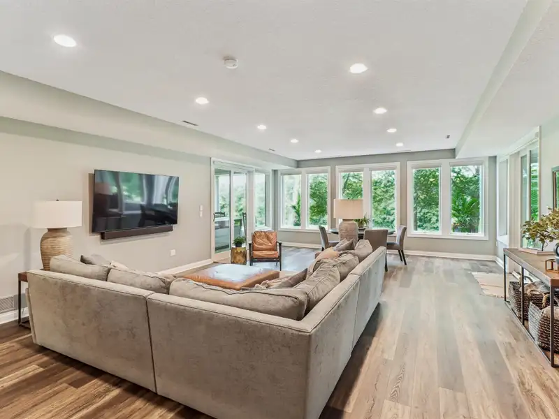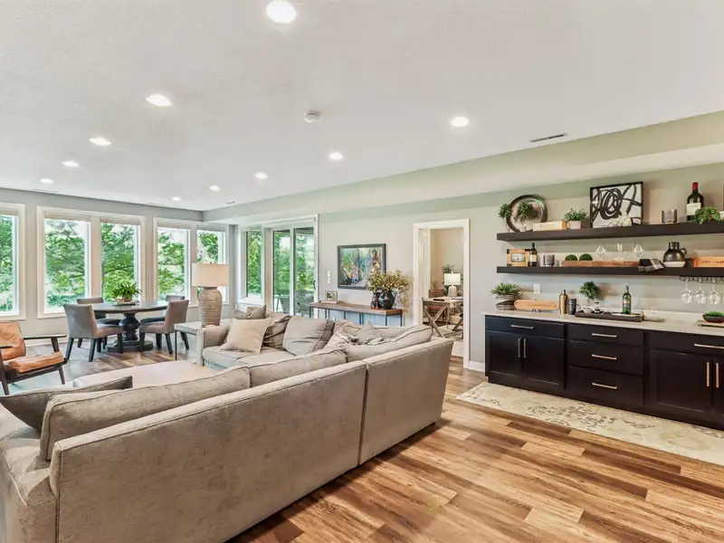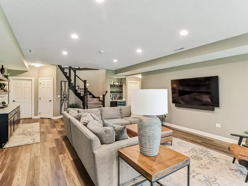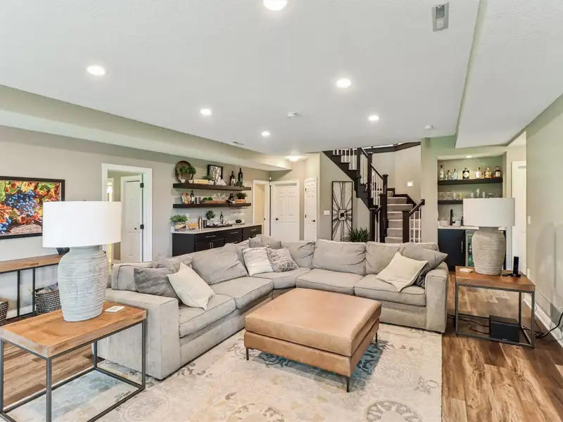 - Finished lower level with custom bar