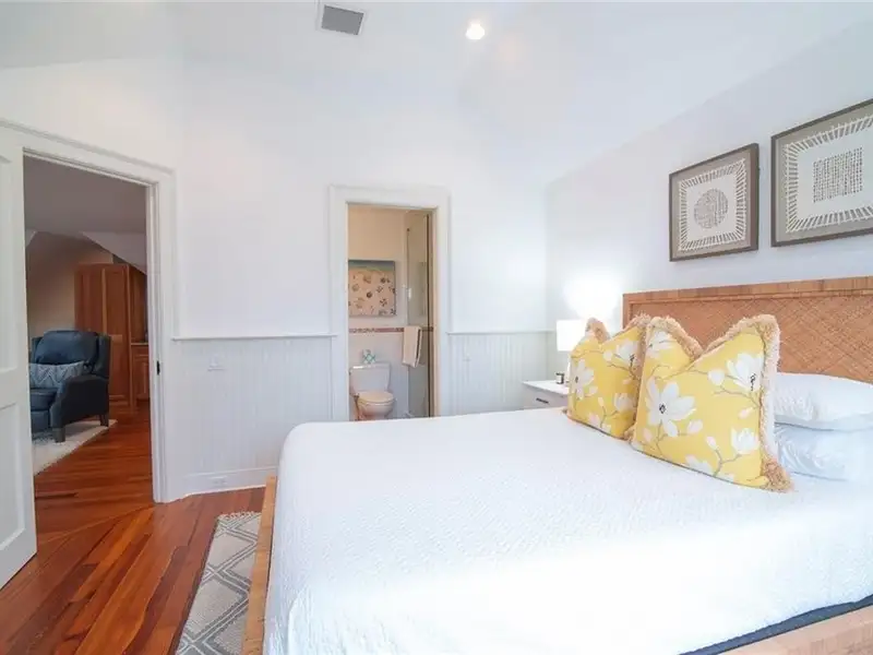 - First-floor primary suite with screened porch
