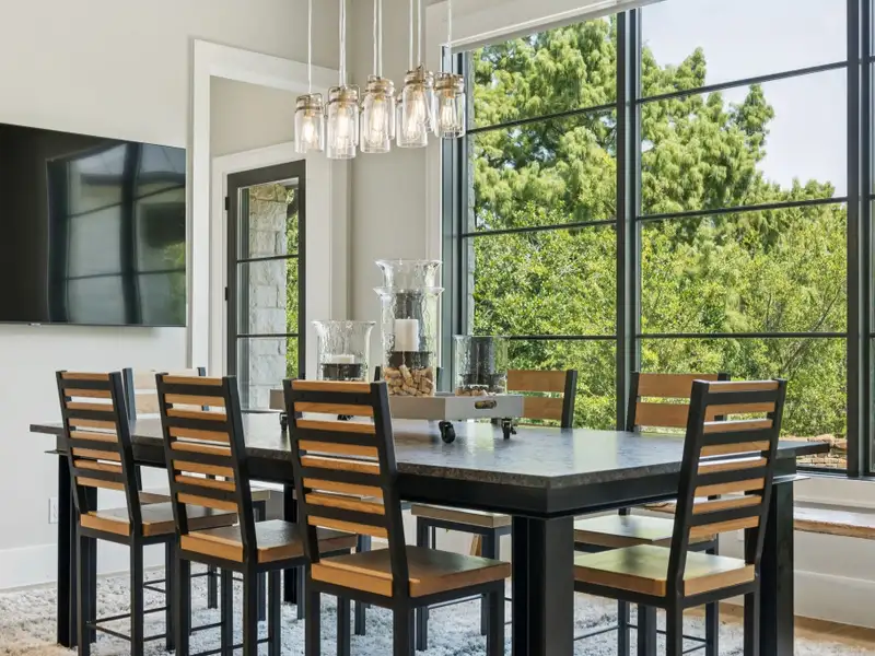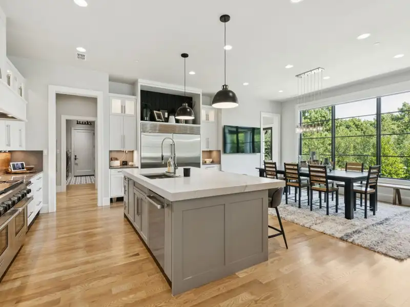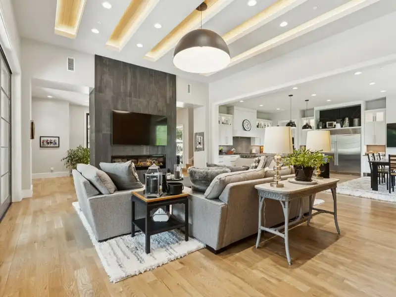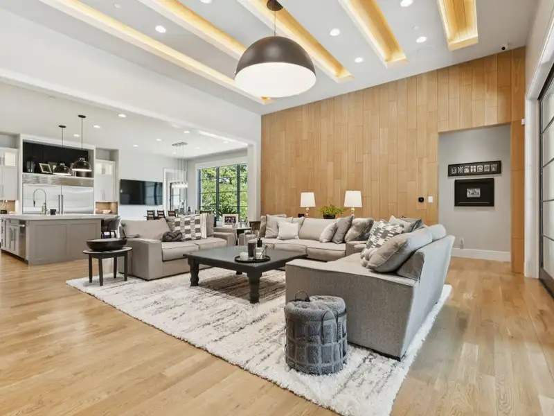 - Spacious great room with white oak feature wall