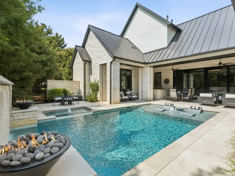 - Backyard oasis with pool, spa, and fire bowls