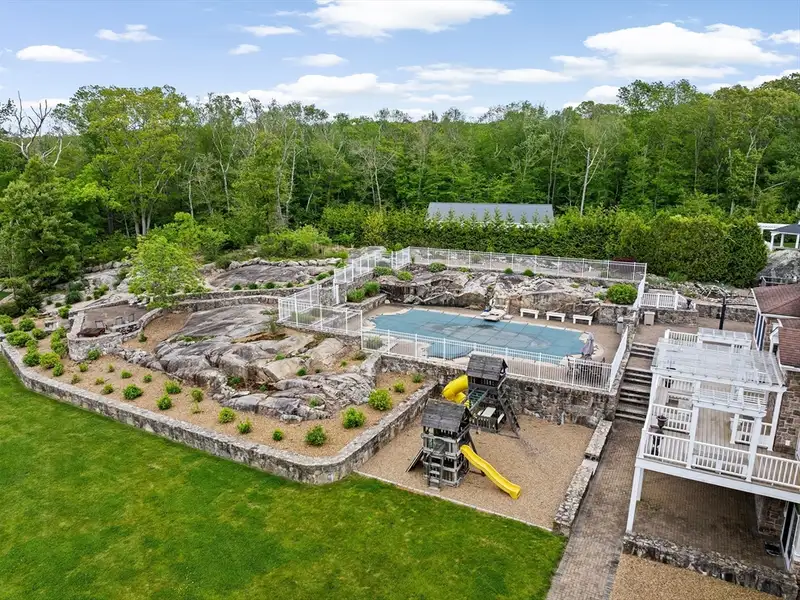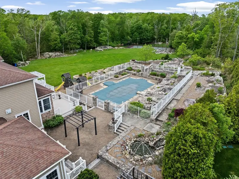 - Tennis court and koi pond