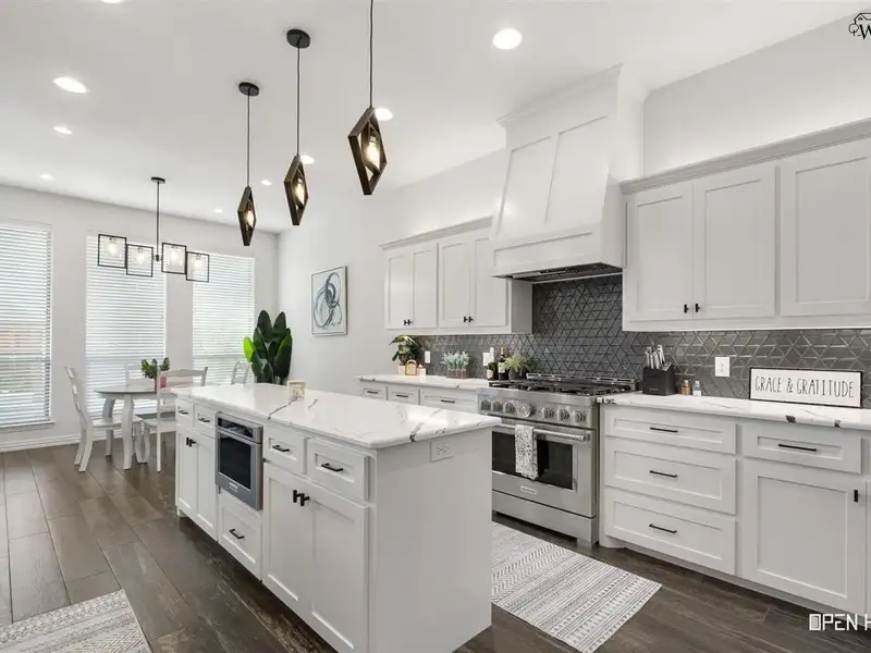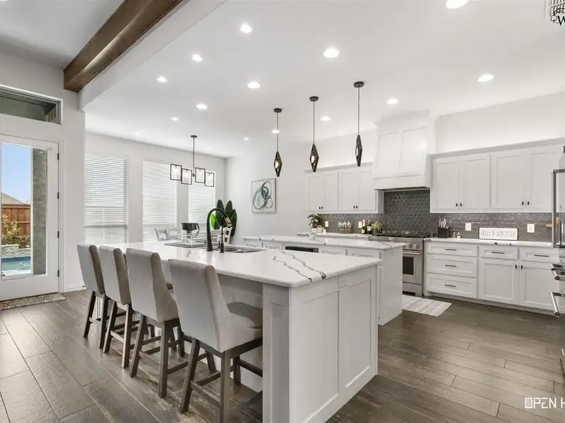 - Kitchen with double island and gas range