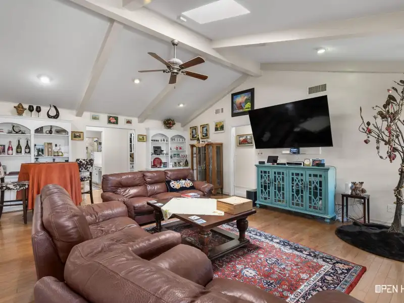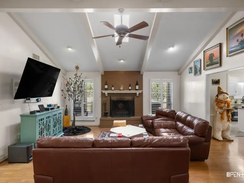 - Vaulted ceiling with wood-burning fireplace