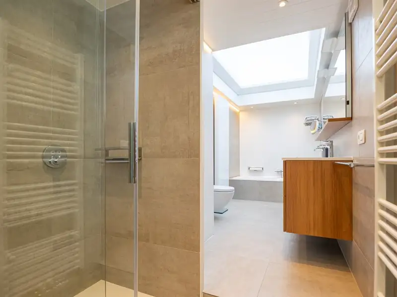 - Designer bathroom with walk-in shower