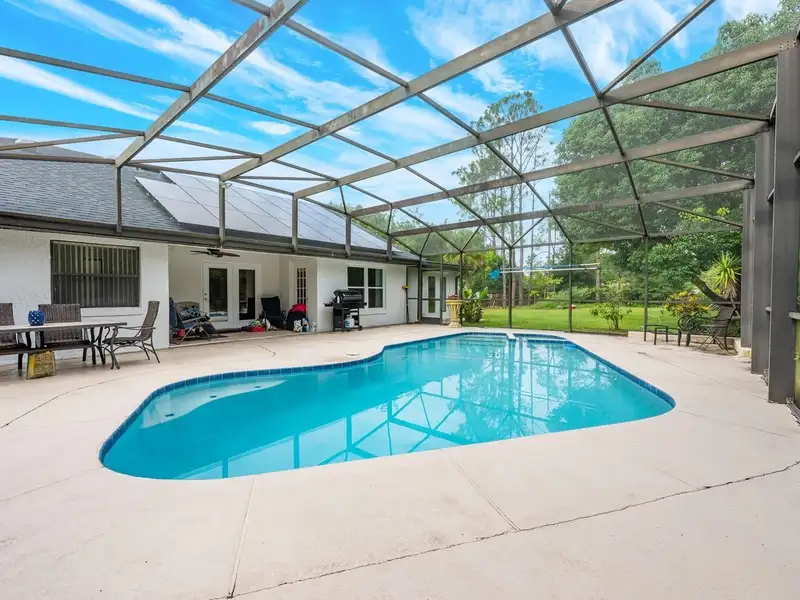 Seller may consider buyer concessions if made in an offer ~ Welcome to Sunrise Estates and your opportunity to own a truly unique property in the heart of Winter Springs! Sitting on just **OVER AN ACRE** at the end of a quiet **CUL-DE-SAC**, this single story **POOL HOME** combines privacy, upgrades, and location in a way that is hard to find. Major improvements bring peace of mind, starting with a NEWER ROOF (2021), UPDATED A/C (2022), NEW WATER HEATER (2022), WATER SOFTENER SYSTEM (2022) and DOUBLE PANE WINDOWS (2022). Fresh EXTERIOR PAINT and a SOLAR SYSTEM (PAID OFF AT CLOSING) keep the home looking great and your utility bills low. Inside you will be delighted to find many updates, along with vaulted ceilings, and HARDWOOD, wood laminate and tile floors that flow throughout the functional layout. The foyer is framed by the living and dining areas, with the living room offering a cozy fireplace and direct access to the lanai. The UPDATED KITCHEN features sleek BOSCH STAINLESS STEEL APPLIANCES, granite countertops, complementary tiled backsplash, abundant storage, and glass inset doors that open directly to the lanai – making INDOOR/OUTDOOR LIVING a breeze! On one side of the home three guest bedrooms share a fully updated bath complete with exterior access, and on the opposite side your expansive PRIMARY SUITE feels like a retreat that delivers custom blinds, a WALK-IN CLOSET and a private en-suite bath with a dual sink vanity, SOAKING TUB and separate tiled shower. A flexible bonus space connects to your suite – ideal for a sitting room, home office, home gym or nursery, with direct access to the backyard for plenty of natural light. Step outside and into your own private oasis – a COVERED LANAI and expansive deck overlooks the sparkling POOL and SPA, all SCREENED and surrounded by mature trees that create a private, tranquil setting. With all the space you could ask for and a fully FENCED YARD, there is plenty of room for play, gardening, or simply enjoying the outdoors! Irrigation is handled by a private well, while the home connects to public water for convenience. Residents will appreciate the LOW HOA, easy access to Sunrise Community Park and the location couldn't be better. You are just minutes from TOP-RATED SCHOOLS, shopping, dining, neighboring Oviedo and major roadways like SR 417, Red Bug Lake Rd, Tuskawilla Rd and 426. Don’t miss the rare chance to own over an acre in Winter Springs with an updated pool home at the center of it all. The private setting, thoughtful upgrades, and unbeatable location make this one a MUST-SEE! Call today to schedule a tour!