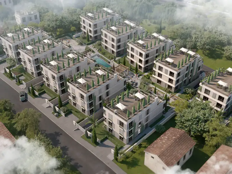 Boka Verde is an exclusive new residential development located in one of Tivat's most attractive green zones — just minutes from the center, Porto Montenegro, international schools, Kalimanj marina, Belane Beach, and Tivat International Airport. Designed as a serene, modern neighborhood tucked into lush Mediterranean nature, Boka Verde offers the perfect balance of tranquility, comfort, privacy, and vibrant coastal living.