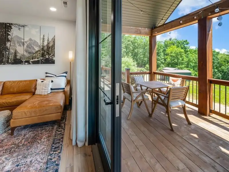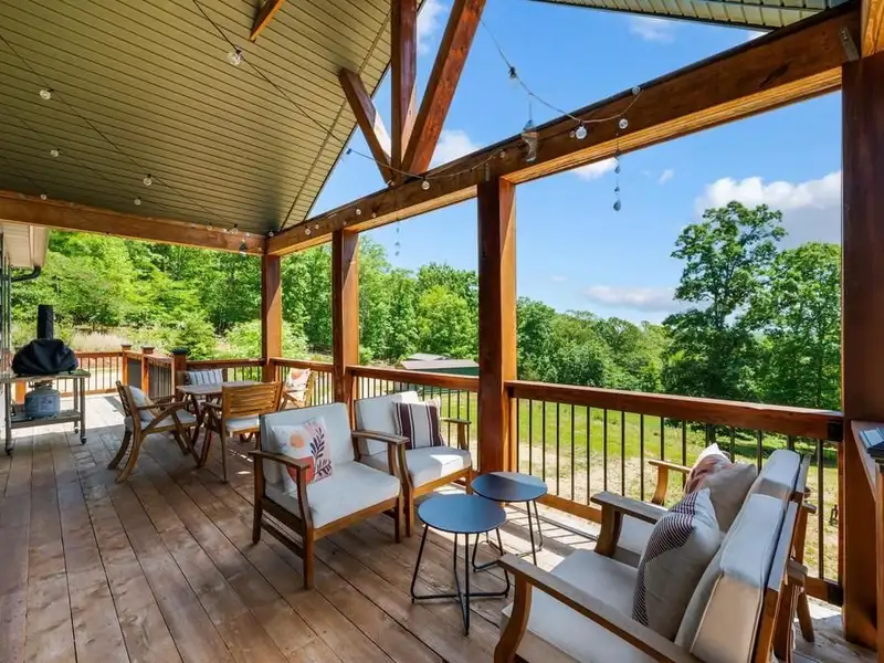 - Expansive cedar-covered porch
