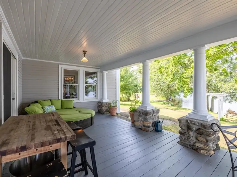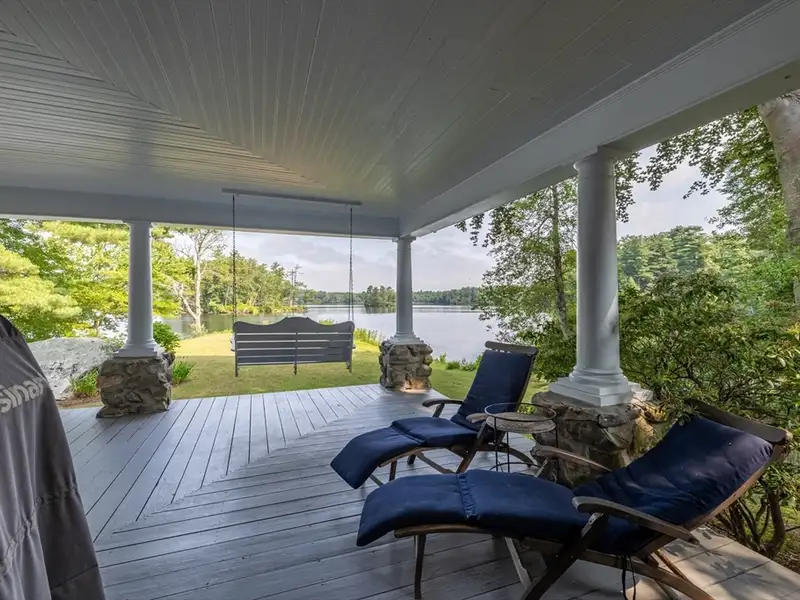 - Wrap-around porch overlooking pond