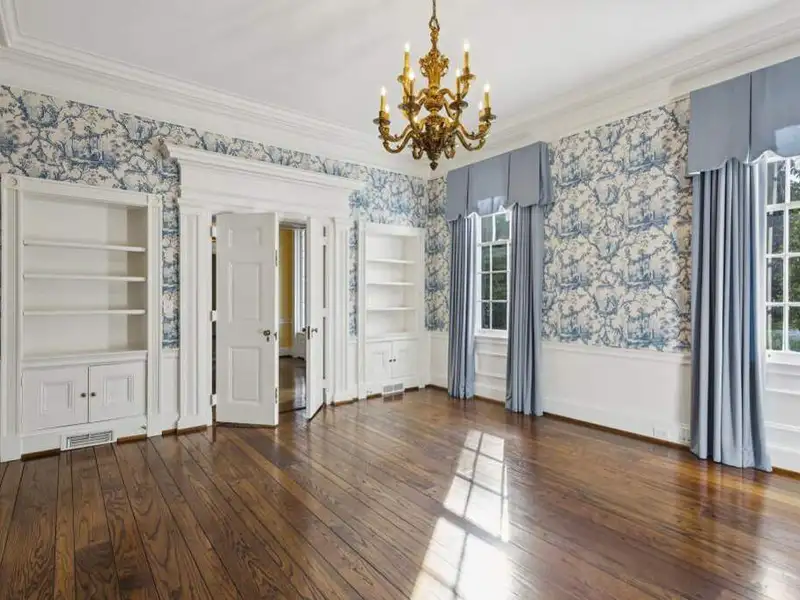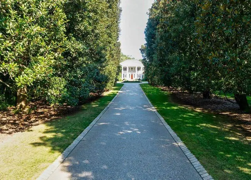 - Long private driveway with magnolia trees