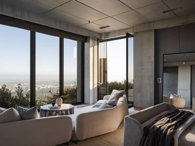 - Retractable glass wall in living room