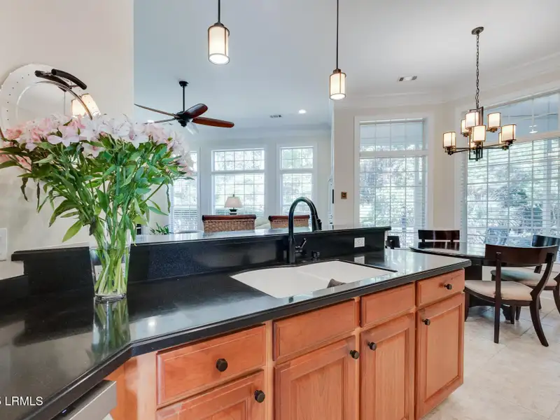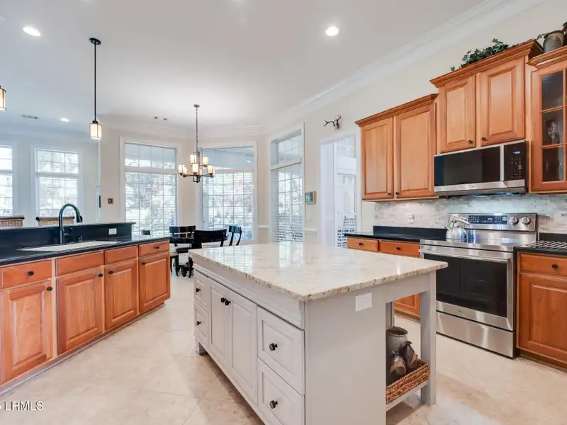 - Granite slab kitchen island