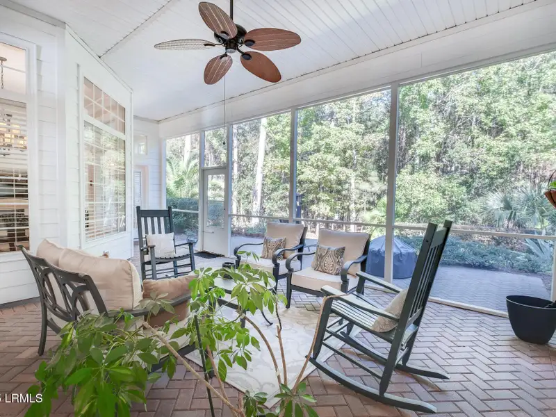 - Screened-in lanai facing woods