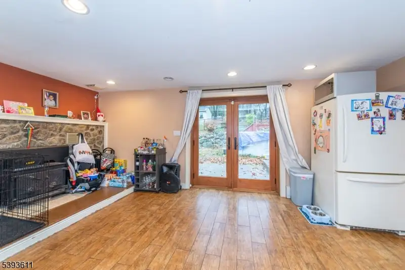 - Large family room with wood-burning stove