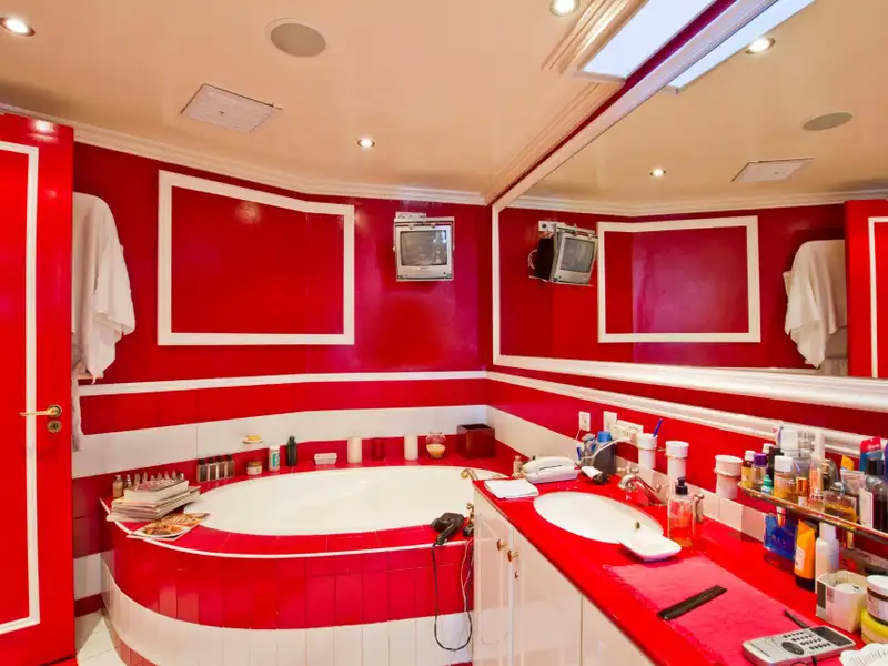 Television in all bedrooms and bathrooms, plus dedicated satellite dish.