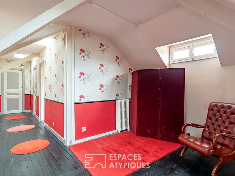 The upper floor accommodates a large landing with office space, a very large living room bathed in light of 36 sqm, four bedrooms, one of which has a dressing room, a bathroom and a separate toilet.