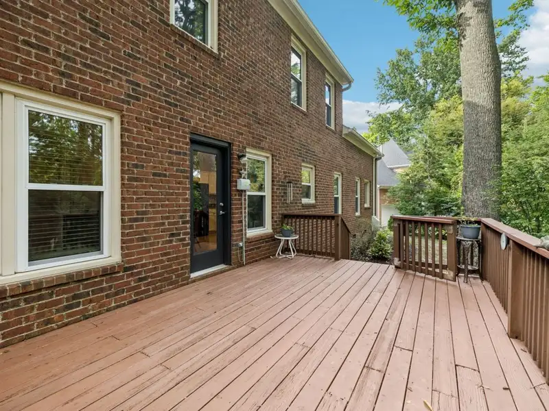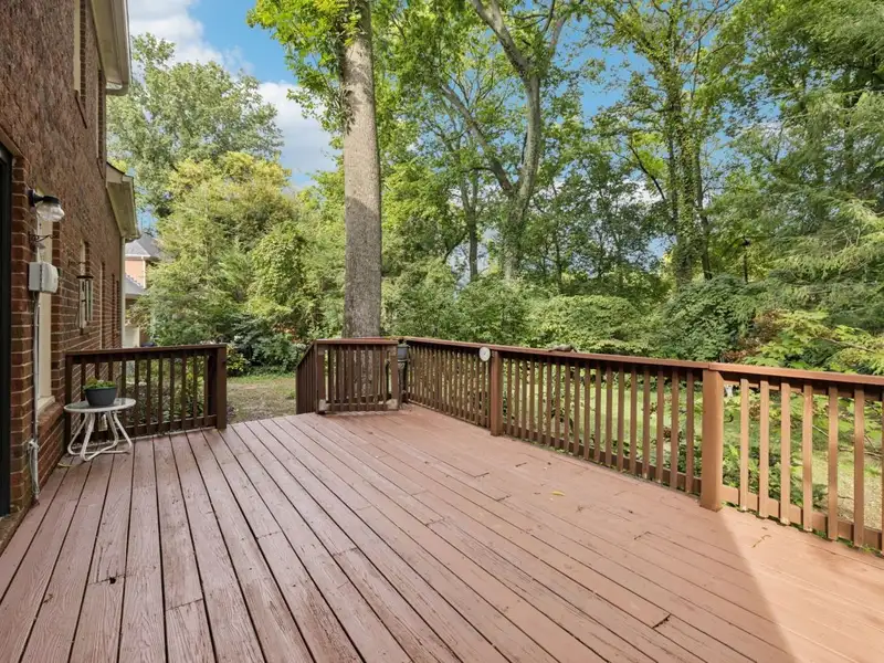 - Large deck overlooking manicured backyard
