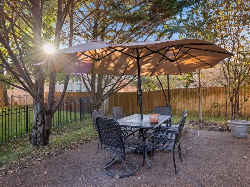 - Fully fenced backyard with mature trees