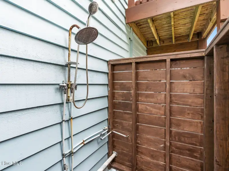 - Fenced yard with outdoor shower