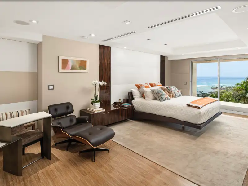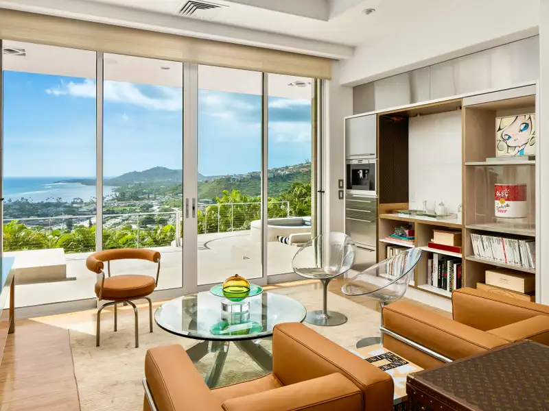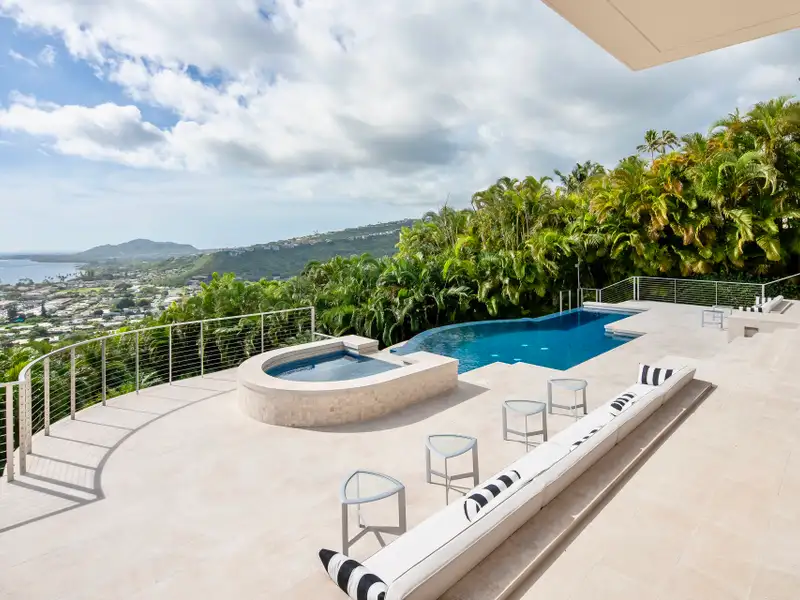 Newly priced at a fraction of the cost to rebuild! Situated on one of the most desired lots in Hawaii Loa Ridge, Kaimana Hila o?ers complete privacy and unobstructed views of Diamond Head, the Pacific Ocean, and Honolulu’s coast from nearly every room. Designed by award-winning architect Je? Long, this residence combines resilient steel-and-concrete construction with interiors crafted by artisans known for their work on ultra-luxury yachts and couture boutiques. Exquisite details like Spinneybeck Italian leather walls, custom closets by Molteni & C Dada, and vein-matched travertine marble bathrooms showcase luxury at every turn. At its heart, a Pininfarina-designed kitchen with Snaidero cabinetry and Gaggenau appliances elevates daily living and entertaining alike. Outside, an expansive lanai with a saltwater infinity pool and hot tub, framed by lush landscaping and breathtaking views, creates a resort-style sanctuary. German-engineered hurricane shutters, a professional security system, and a gated community with 24hr security make this a true lock-and-go residence—o?ering unmatched luxury and refinement in Honolulu.