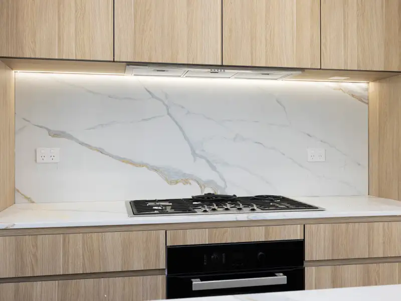 - Designer kitchen featuring an island benchtop