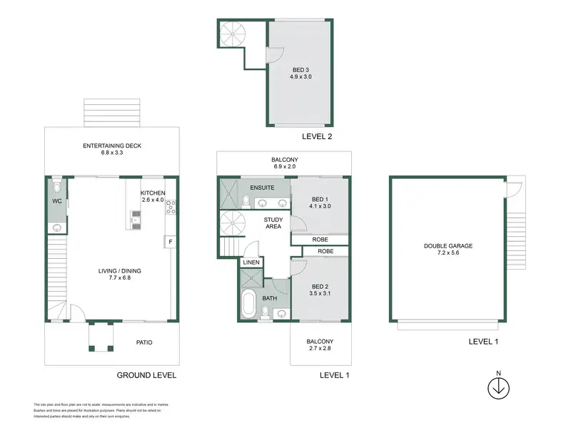 Upstairs, accommodation is generous, with the master suite and second bedroom both opening to their own balconies. A dedicated study nook, modern bathrooms, a ground-floor powder room and internal access to a double lock-up garage complete the impressive layout.