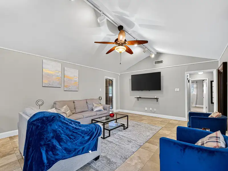 - Spacious living room with high ceilings