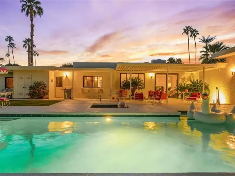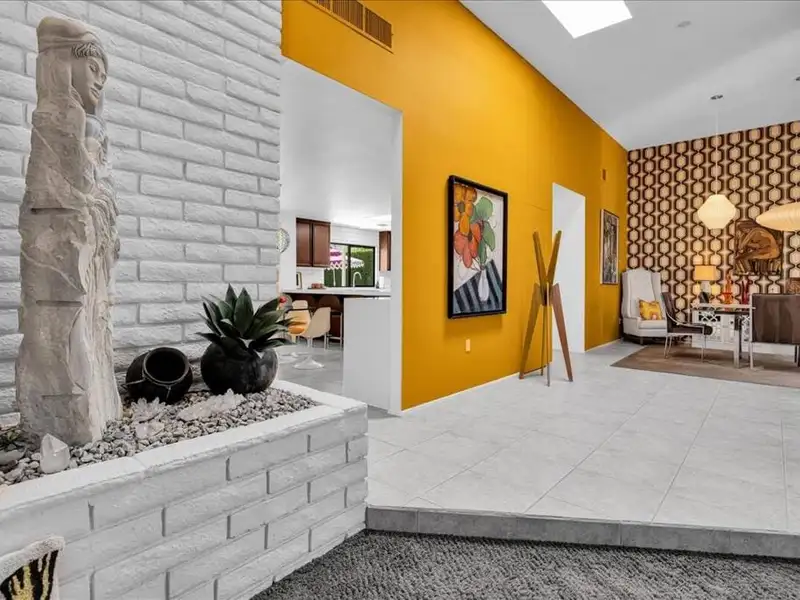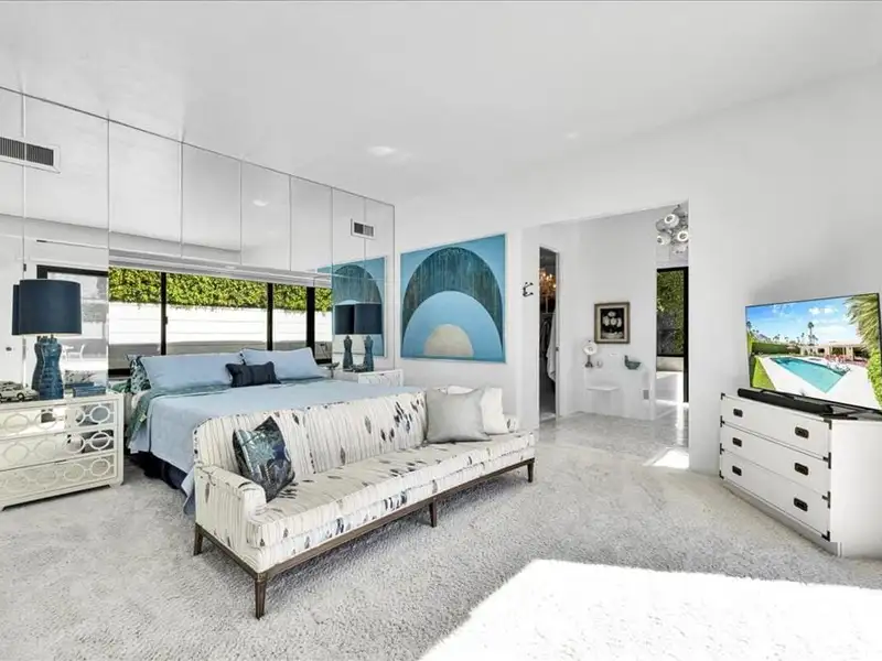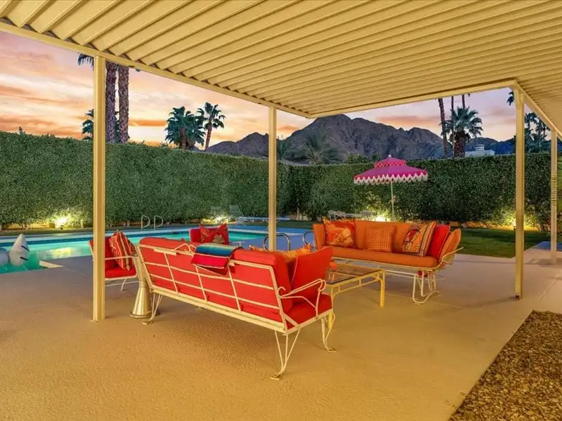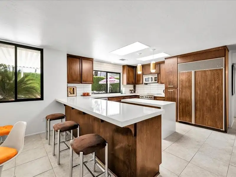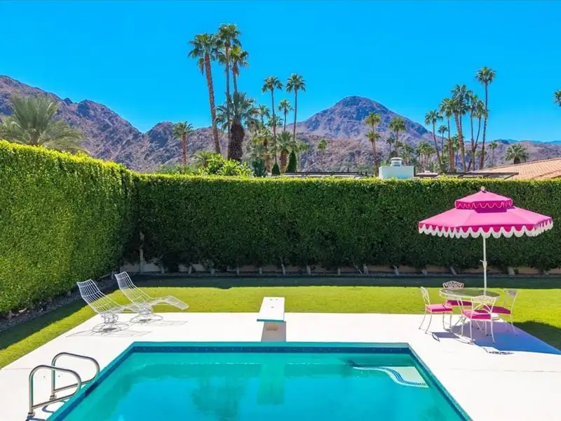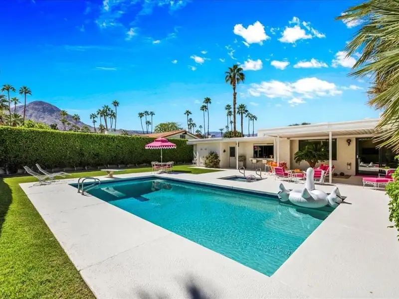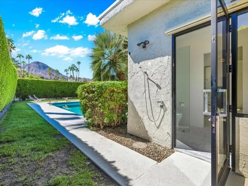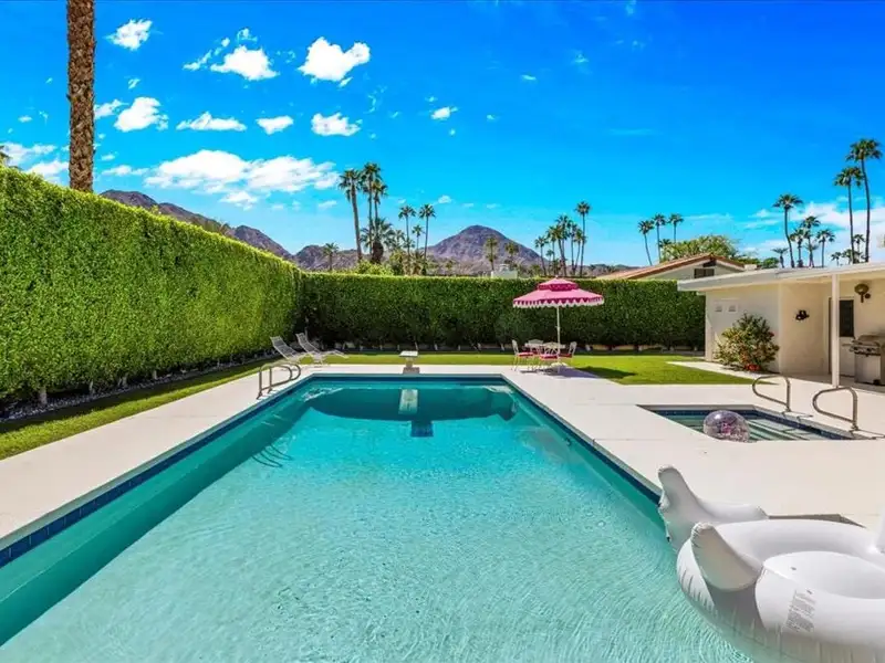 Nestled in one of the most beautiful and serene neighborhoods in Indian Wells, this mid-century home has been subtly and meticulously upgraded to maintain the best of its original charm. Textured relief on the front of the home is the first hint of mid-century character extending throughout the home. Intricately carved entry doors welcome you home with grace and elegance. A sunken living room with soaring ceilings is chic and comfortable, perfect for entertaining. A formal dining room opens out through Fleetwood sliders to a private front patio. The kitchen is updated with a Sub-Zero fridge and Viking induction range. A breakfast nook and family room are adjacent, with a cozy gas fireplace. Generously sized guest bedrooms make this a truly livable home. Each one accommodates a king-size bed and a desk or seating area. Each has a walk-in closet. The hall bath is large and serves both guest bedrooms, but could be converted into 2 separate en-suite bathrooms. The primary suite is a serene retreat, with direct access to the pool, a spacious walk-in closet, and a spa-inspired bath with soaking tub and walk-in shower. Wake up to spectacular views of Mount Eisenhower every day. On the south side of the home is a spacious laundry room and an in-law suite, with generously sized bedroom and a bathroom with its original countertop and shower tile in beautiful condition. A spotless, air-conditioned 3-car garage gives you plenty of room for your golf cart or a fun vintage car! Step outside to your private resort oasis, where a sparkling pool and spa are framed by lush landscaping and high hedges for the utmost in privacy. The covered patio gives you ample room for al fresco dining - seamless indoor-outdoor flow embodies the essence of desert luxury living. This home was designed and built by Vicki McDermott (Miss Palm Springs of 1961!) who is renowned for her gracious homes in the area. This coveted enclave east of Eldorado has no HOA! As an Indian Wells resident, you'll enjoy exclusive privileges, including golf and spa discounts at world-renowned resorts, adding to the unmatched lifestyle you will lead. Indian Wells allows rentals of 29 nights or more year-around and one short-term (7-night minimum) rental during the annual BNP Paribas tennis tournament. Homes in this neighborhood are rarely available. This is an exceptional opportunity to own in one of Indian Wells' most distinguished communities. Make an appointment to see it today!