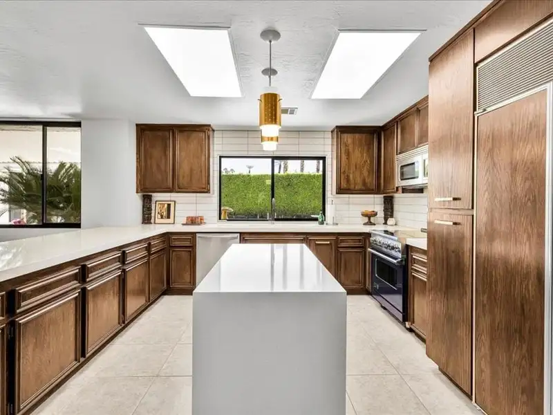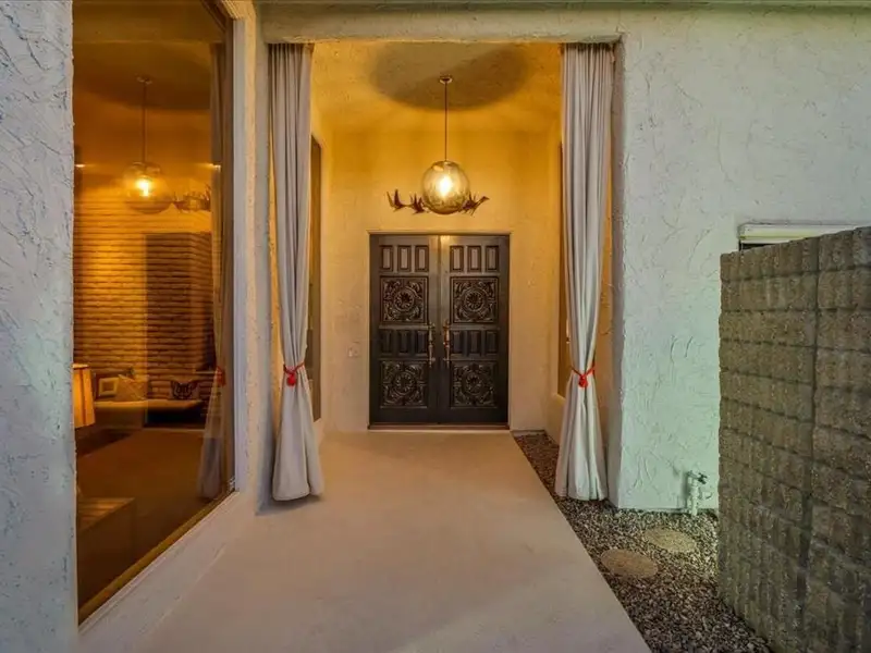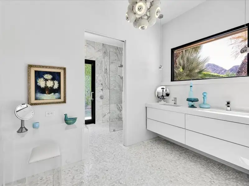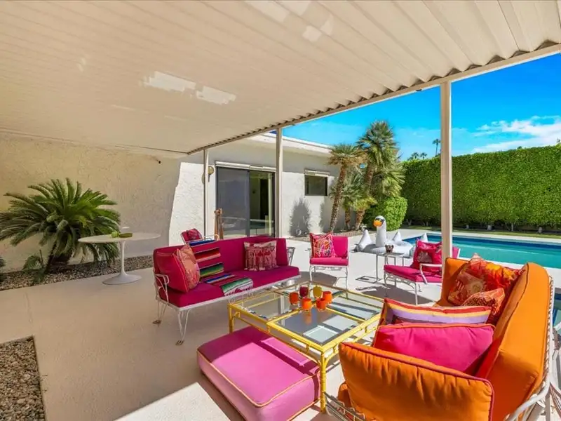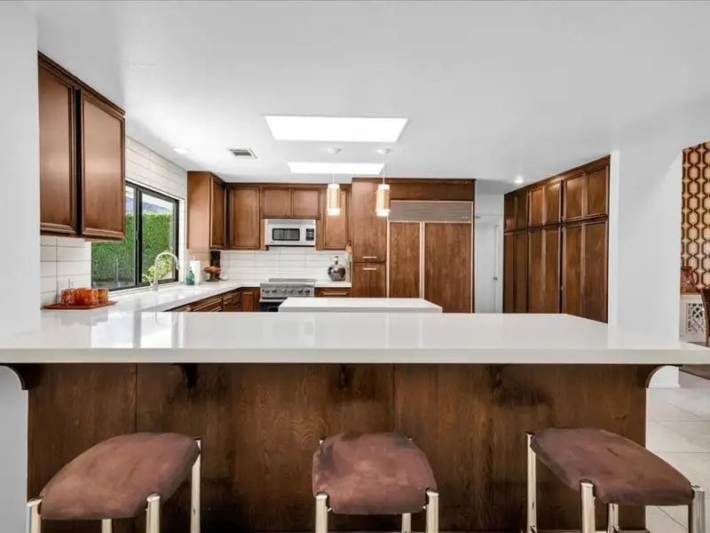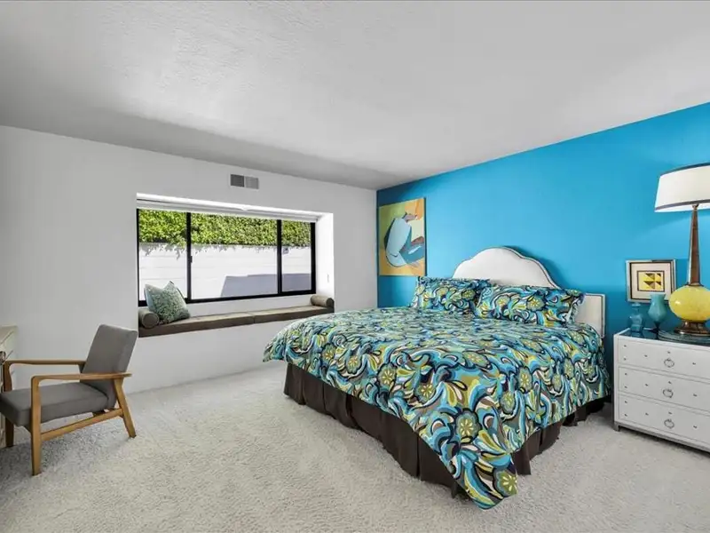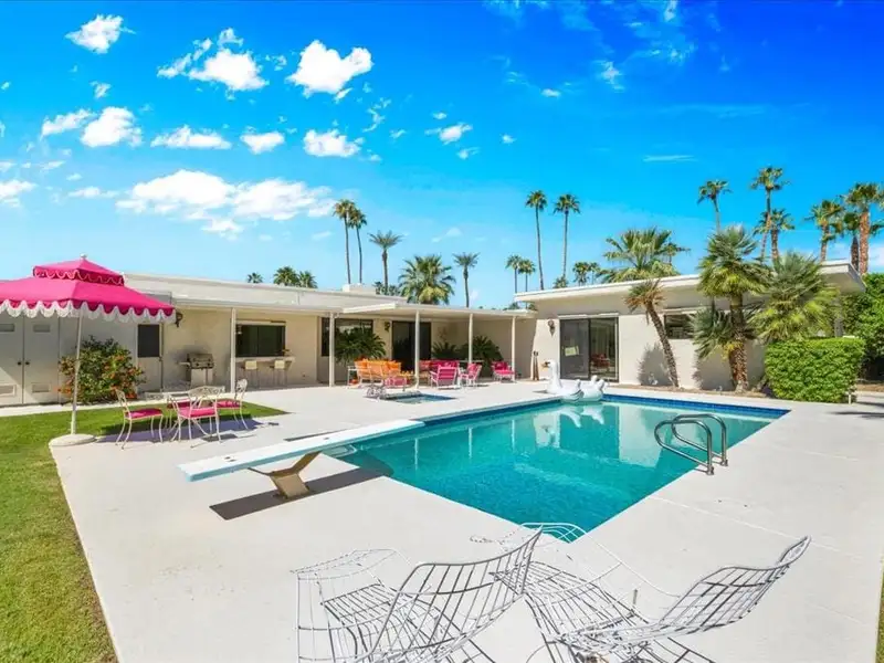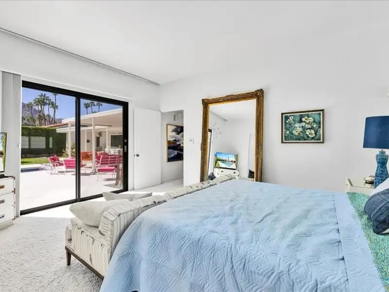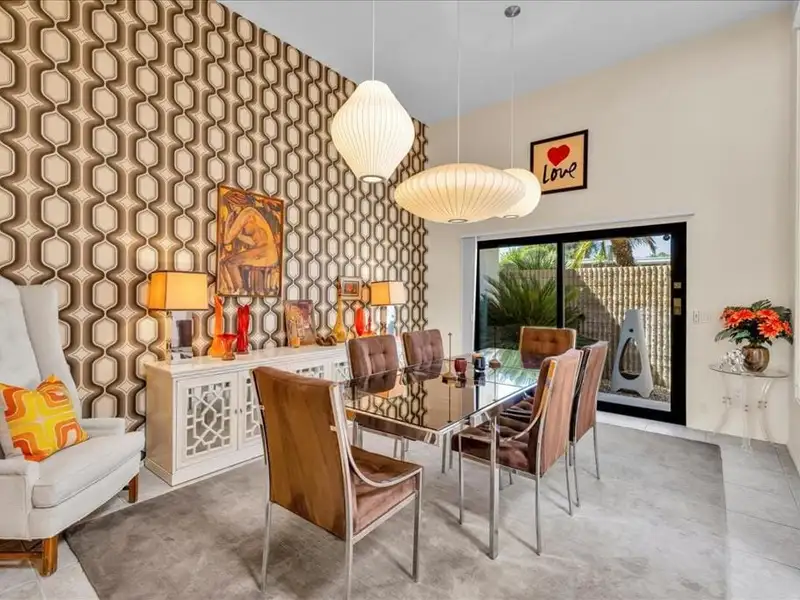 Nestled in one of the most beautiful and serene neighborhoods in Indian Wells, this mid-century home has been subtly and meticulously upgraded to maintain the best of its original charm. Textured relief on the front of the home is the first hint of mid-century character extending throughout the home. Intricately carved entry doors welcome you home with grace and elegance. A sunken living room with soaring ceilings is chic and comfortable, perfect for entertaining. A formal dining room opens out through Fleetwood sliders to a private front patio. The kitchen is updated with a Sub-Zero fridge and Viking induction range. A breakfast nook and family room are adjacent, with a cozy gas fireplace. Generously sized guest bedrooms make this a truly livable home. Each one accommodates a king-size bed and a desk or seating area. Each has a walk-in closet. The hall bath is large and serves both guest bedrooms, but could be converted into 2 separate en-suite bathrooms. The primary suite is a serene retreat, with direct access to the pool, a spacious walk-in closet, and a spa-inspired bath with soaking tub and walk-in shower. Wake up to spectacular views of Mount Eisenhower every day. On the south side of the home is a spacious laundry room and an in-law suite, with generously sized bedroom and a bathroom with its original countertop and shower tile in beautiful condition. A spotless, air-conditioned 3-car garage gives you plenty of room for your golf cart or a fun vintage car! Step outside to your private resort oasis, where a sparkling pool and spa are framed by lush landscaping and high hedges for the utmost in privacy. The covered patio gives you ample room for al fresco dining - seamless indoor-outdoor flow embodies the essence of desert luxury living. This home was designed and built by Vicki McDermott (Miss Palm Springs of 1961!) who is renowned for her gracious homes in the area. This coveted enclave east of Eldorado has no HOA! As an Indian Wells resident, you'll enjoy exclusive privileges, including golf and spa discounts at world-renowned resorts, adding to the unmatched lifestyle you will lead. Indian Wells allows rentals of 29 nights or more year-around and one short-term (7-night minimum) rental during the annual BNP Paribas tennis tournament. Homes in this neighborhood are rarely available. This is an exceptional opportunity to own in one of Indian Wells' most distinguished communities. Make an appointment to see it today!