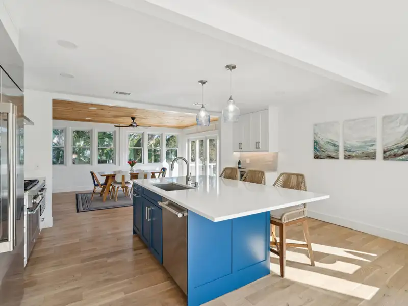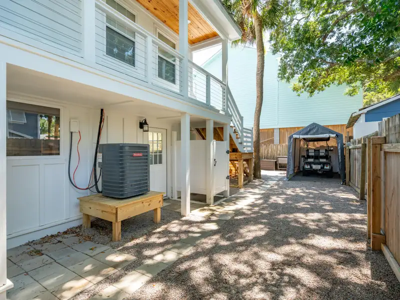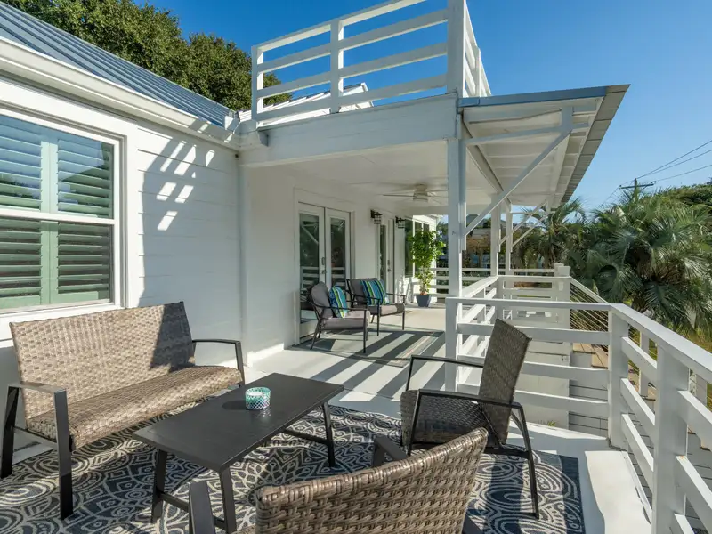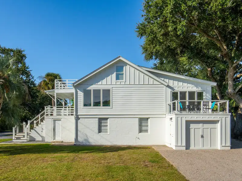 Steps to the Beach! This classic beach house sits on a large corner lot just one block from the 25th Avenue beach access. An original duplex, it has been fully renovated with modern finishes while retaining its island charm. With new roofing, flooring, kitchens, bathrooms, electrical, plumbing, garage, and custom porches, this home is move-in ready with endless potential. Live in one unit and rent the other, create a dedicated guest suite, or convert to a spacious single-family home - the choice is yours! **Note: Listing agent is the seller.**Enter the upstairs unit through the covered front porch with conversational seating as well as an open deck area with views of palm trees in every direction. The upstairs has beautiful new hardwood flooring throughout. The open floor plan and large windows paint the room with natural light and great views of the surrounding trees.The gourmet kitchen is appointed with a professional gas range and vented hood, dishwasher, 42 inch built in refrigerator with filtered water and ice machine, built in microwave drawer with hidden control panel, a large island with sink and seating on three sides and a bar area with under counter beverage refrigerator. Enjoy dining and entertaining in the spacious, treehouse-style dining area surrounded by beautiful views and decorated with a gorgeous natural wood ceiling. Extra large storm resistant sliding glass doors provide access from the dining area to an uncovered deck for grilling and enjoying the sunshine. The upstairs primary bedroom is large enough to accommodate a king sized bed and large dresser. A walk in closet with custom organization provides drawers, shelves and racks for clothing storage as well as a full sized washer and dryer. The primary bathroom includes an oversized shower, dual sinks, and custom built closet & drawers. The second bedroom is large enough to accommodate a king sized bed with a reach-in closet for clothing and two windows offering plenty of light. Both bedrooms have custom wood shutters on the windows. Flexible third bedroom/office with exterior doors to the front porch and full sized stairs to extensive attic space, conditioned and insulated for storage, and an additional closet under the stairs. The second upstairs bathroom includes an extra deep soaking tub and mermaid tiles on the back wall. Enter the downstairs unit through a screened porch with outdoor seating and a wall fan to keep you cool on a warm summer day. The large, open living room, dining, and kitchen area are designed for entertaining with plenty of room for seating and a full sized kitchen. Luxury vinyl flooring provides a light and beautiful look that is also easy to care for. Down the hall, there are two large bedrooms that each accommodate king sized beds. One has a reach-in closet and the other has a walk in closet. A full bathroom in the hall is shared. A bonus room for overflow, office, or playroom area provides access to the downstairs laundry and utility storage area. Three exterior doors on the laundry area allow for easy access to bikes and could be divided to provide half to upstairs and half to downstairs units. A one car garage addition runs the length of the back of the house with additional space for a workout area and a place to store all of your tools and equipment, surfboards, and beach chairs. Gravel driveways in the front and on the side of the house offer ample off-street parking, a premium on IOP. The large side yard is fully fenced with plenty of space for entertaining or to add a pool or hot tub. Whether you're looking for a primary residence with income potential, a vacation rental investment, or a multi-generational retreat, this property offers flexibility and value in a highly sought-after location. Don't miss this rare opportunity to own a fully updated duplex on Isle of Palms where lifestyle meets luxury, just steps from the sand!