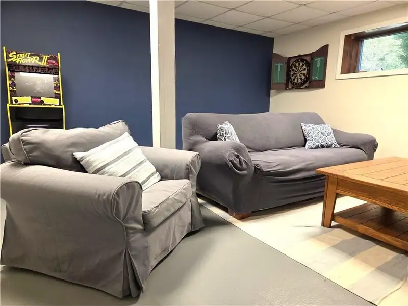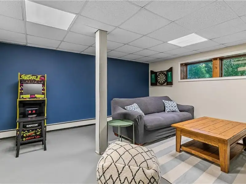 - Lower level den/playroom space