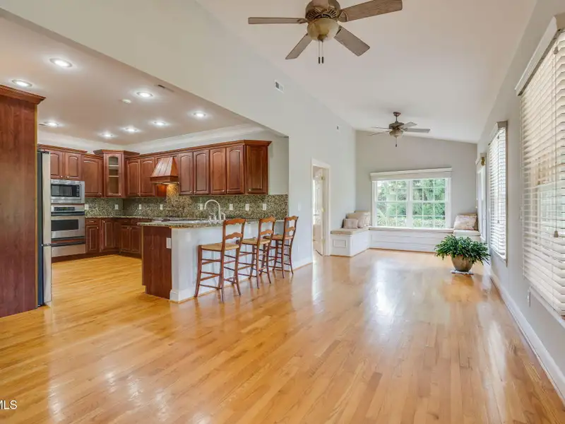 - Vaulted ceilings with gas log fireplace
