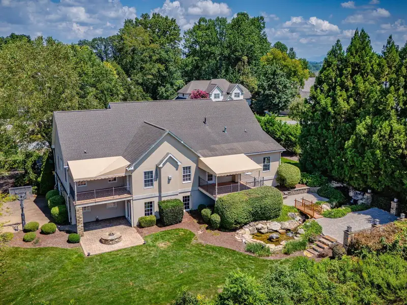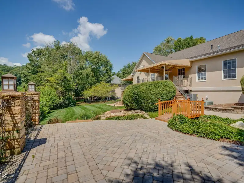 - Multiple patios with waterfalls and pond