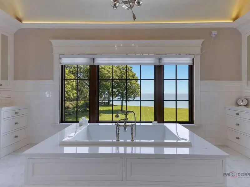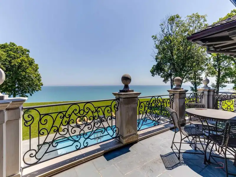 Opportunity of a lifetime to own this spectacular Lake Forest estate, spanning over 5.27 acres with 570 feet of Lake Michigan frontage! After four years of construction, incorporating everything the most discerning buyer would expect in new construction, this estate was completed in 2019. Featuring a protected cove beach, 2 boat launches, a fabulous pool, spa, boathouse and garage space for 22 cars, this home is the epitome of luxury living! Drive through the gated southern entrance to the boathouse or use the opulent historic monumental staircase, enjoying the details of the grand marble fountain and stairs to the boathouse from the original Harold F. and Edith Rockefeller McCormick estate. This magnificent home boasts 10,000 SF of sophisticated and stately living space above grade, 5,000 SF of exquisitely finished lower-level space and 6,000 SF of beautifully finished garage space for 16 cars, with elevator access to all 4 levels. As you enter the grounds of this breathtaking estate, there is a circular stone drive that leads to the stone forecourt w/ two, 3-car garages and a driveway to the underground 16 car garage, all w/ snow melt systems. This stone and brick home has a slate roof w/ custom copper gutters & downspouts, Marvin windows & doors, high ceilings, deluxe designer lighting, smart house technology, geothermal heating and cooling w/ radiant heat floors on all 4 levels, and a back staircase w/ access to all levels. The outdoor amenities are beyond compare and include a pool with deck jets, diving board and under water speakers, a spa with a fountain and 2 fire bowls, an outdoor kitchen and bluestone terraces w/ 3 loggias, one with a TV and fireplace. The custom 3 1/2 inch thick white oak front door with sidelights and artistic wrought iron detail opens to the foyer with limestone floors and 8 custom, concealed wood paneled closets. The handsome library w/ walnut bookshelves, library ladder, intricate millwork, and fireplace has French doors that open to the back loggia with panoramic views of the lake and access to the northern 3 car garage with separate loggia. The east loggia connects to the living room and overlooks the pool, expansive grounds and Lake Michigan. The living room opens to the elegant dining room, which is adjacent to the breakfast room and exquisite Christopher Peacock kitchen and butler's pantry w/ white high gloss cabinetry w/ walnut interiors, and thick quartzite countertops. The massive island has Bahia granite countertops, refrigerator drawers and seating for 4. La Cornue, Miele and Sub-Zero appliances complete this gourmet kitchen which is open to the stunning family room. The exquisite staircase to the second floor is oval w/ custom wrought iron railings that blend utter sophistication with today's living. The luxurious primary suite has incredible views of the lake w/ French doors accessing a private blue stone balcony. The suite contains two separate custom closets w/ designer lighting, 2 linen closets, and a wet bar. The primary bathroom has a large frameless steam shower and lovely soaking tub that overlook the lake w/ two separate custom vanities w/ indirect cove lighting accenting the gold leaf barrel vault ceiling. En-suite bedrooms 2, 3 and 4 have wide plank hardwood floors, gorgeous bathrooms and access to a secondary balcony on the east side of the home w/ magnificent views of the lake. Bedroom 5 has a wonderful balcony with sunset views, 2 custom closets and a fabulous bathroom w/ separate tub and shower. The huge laundry room w/ 3 washing machines and 3 dryers completes the second floor. The lower level has one additional bedroom currently used as a gym, a phenomenal theatre room that seats 16, an incredibly luxurious spa room w/ a large RIVA jetted tub w/ rain shower above, fireplace, steam shower & sauna, a lounge w/ an expansive custom designed wet bar, outstanding wine cellar w/ views of the 16-car garage, a billiards room & 2nd family room w/fireplace. ABSOLUTE PERFECTION
