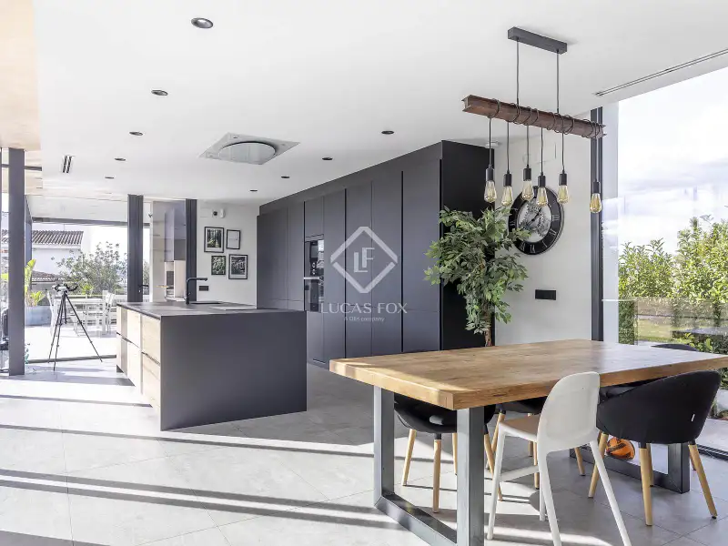 - Open-plan kitchen with double-height ceiling