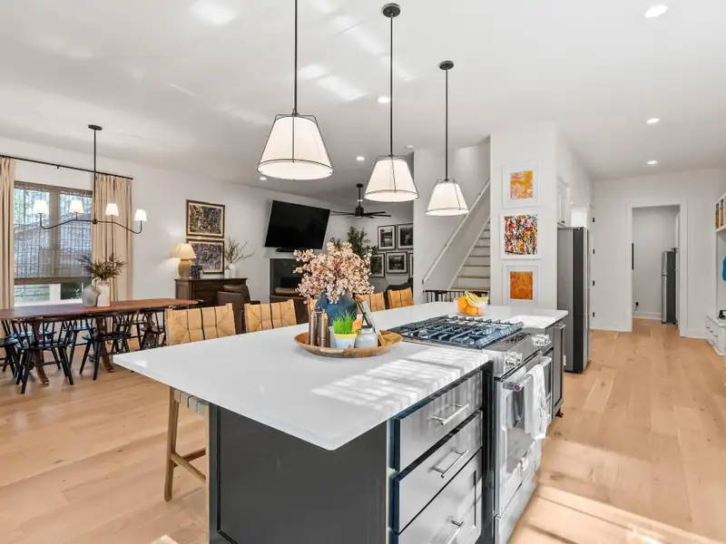- Chef's kitchen with gas cooktop and farmhouse sink