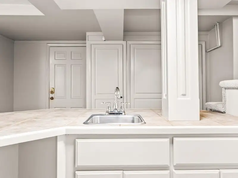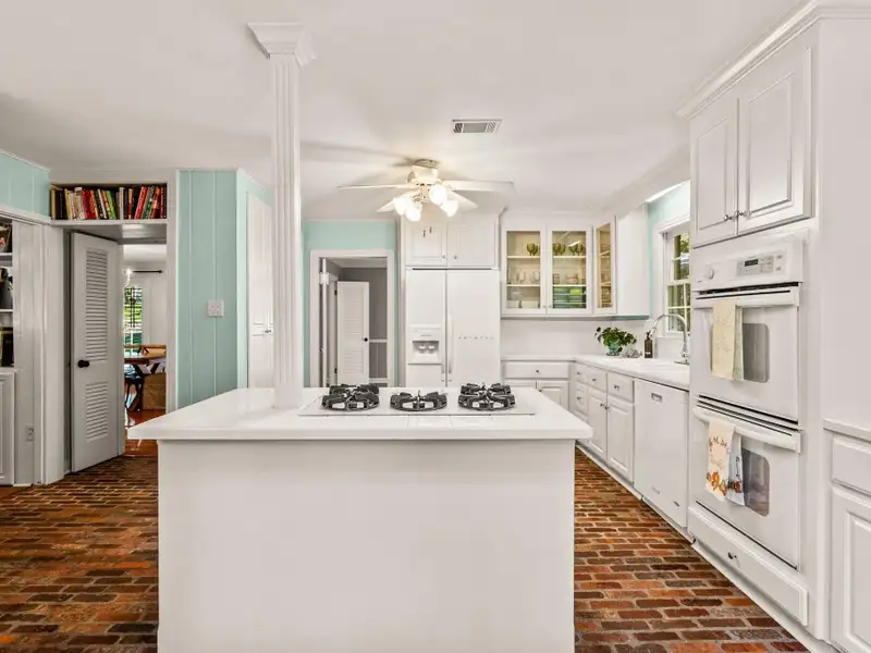 - Kitchen with island and breakfast bar